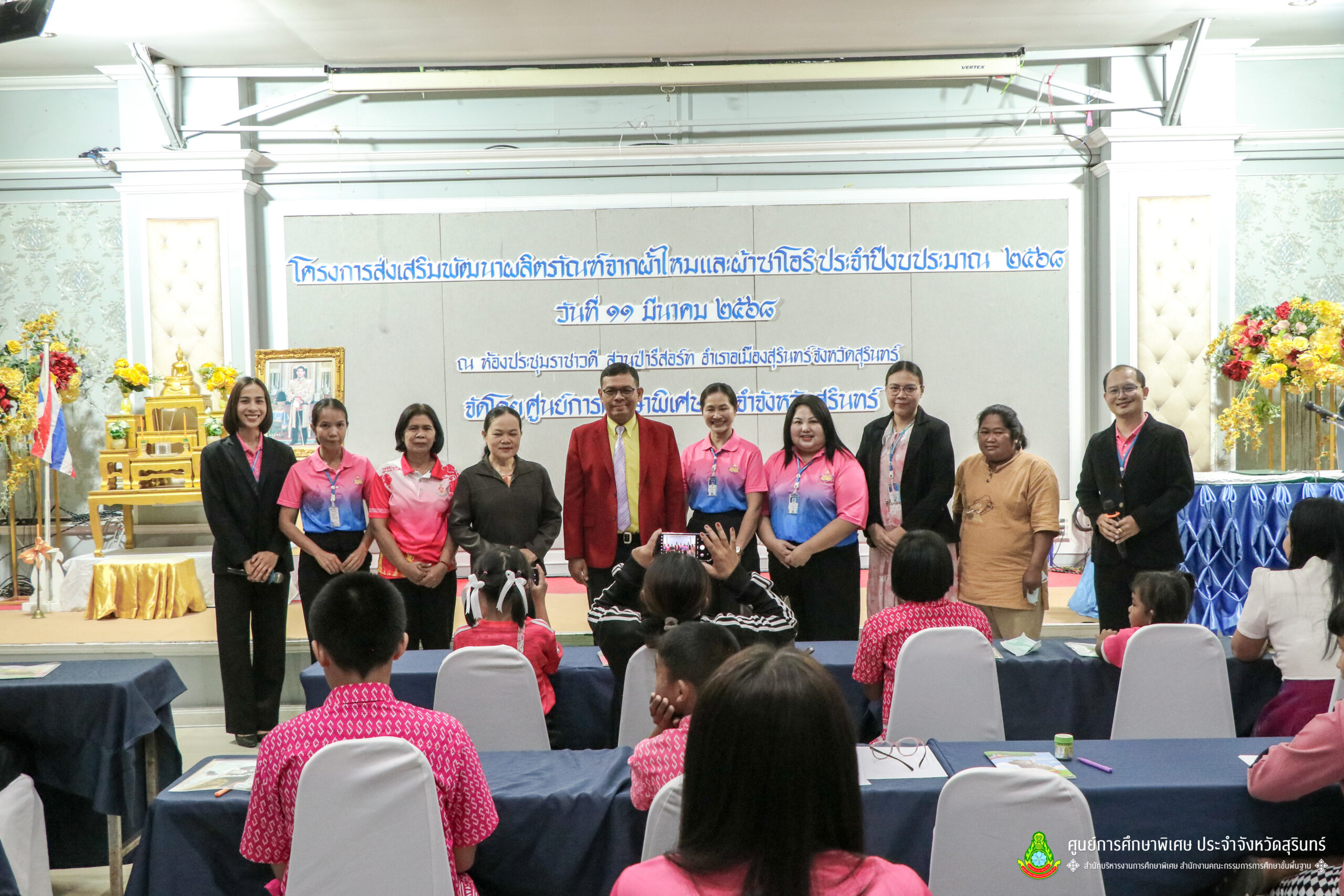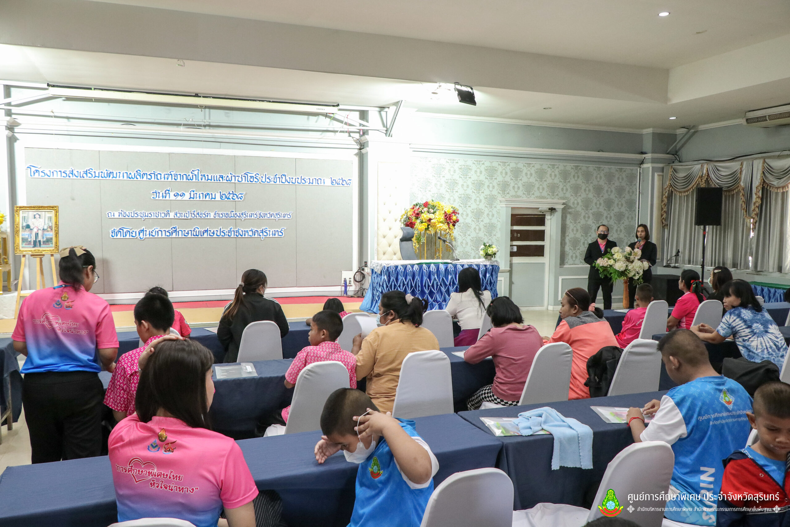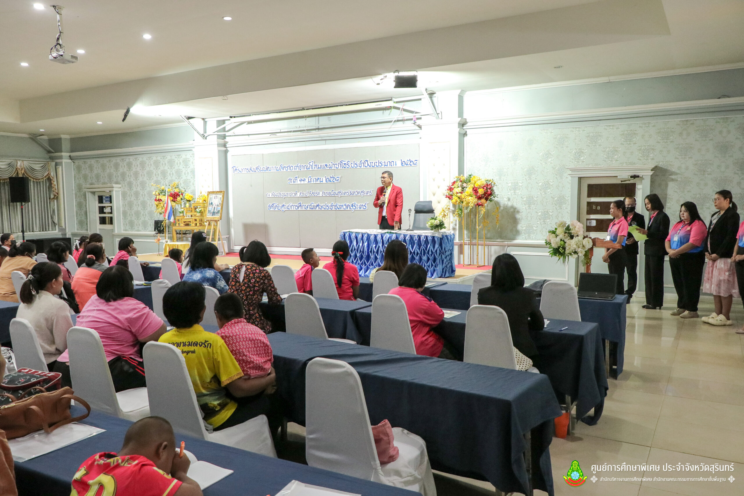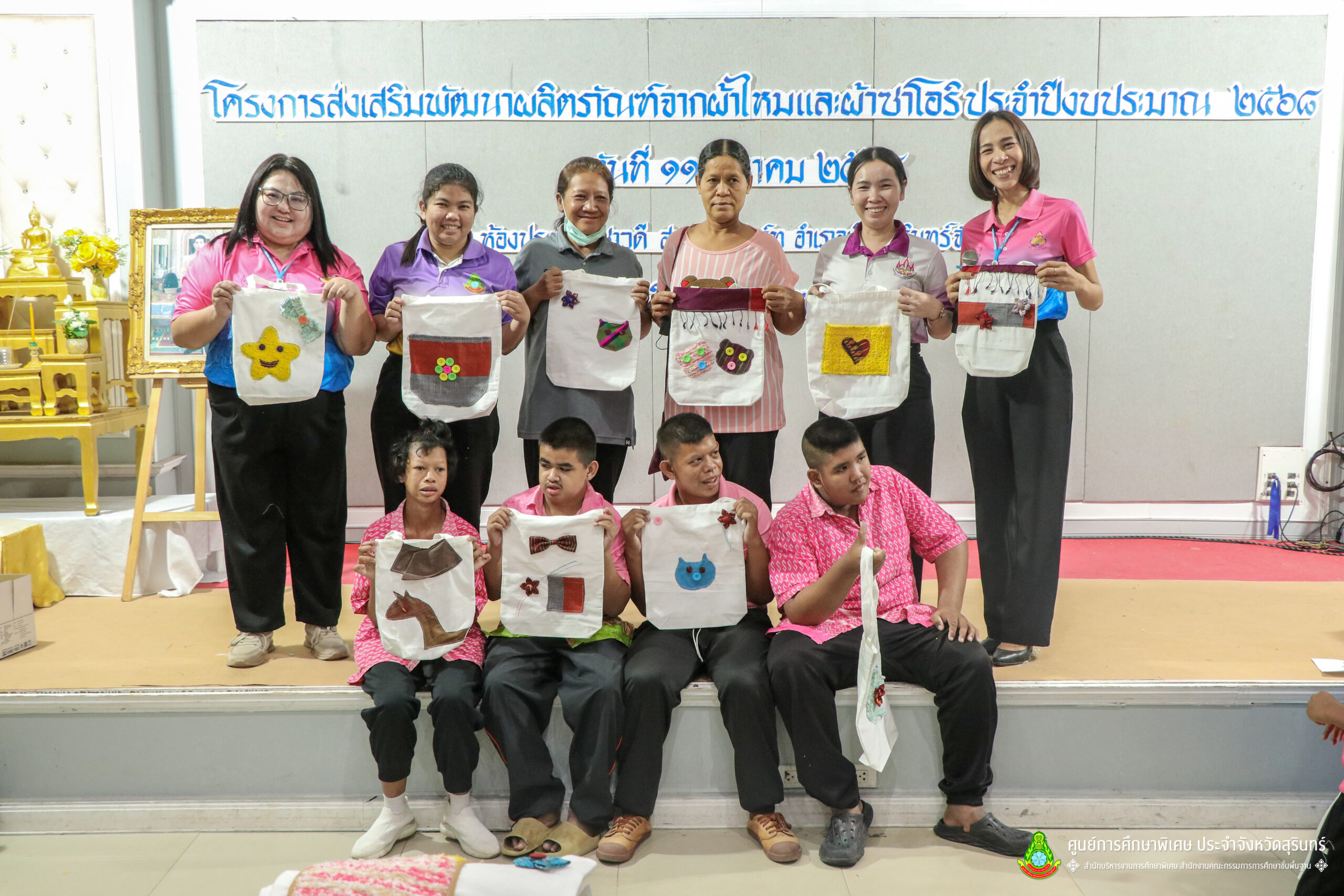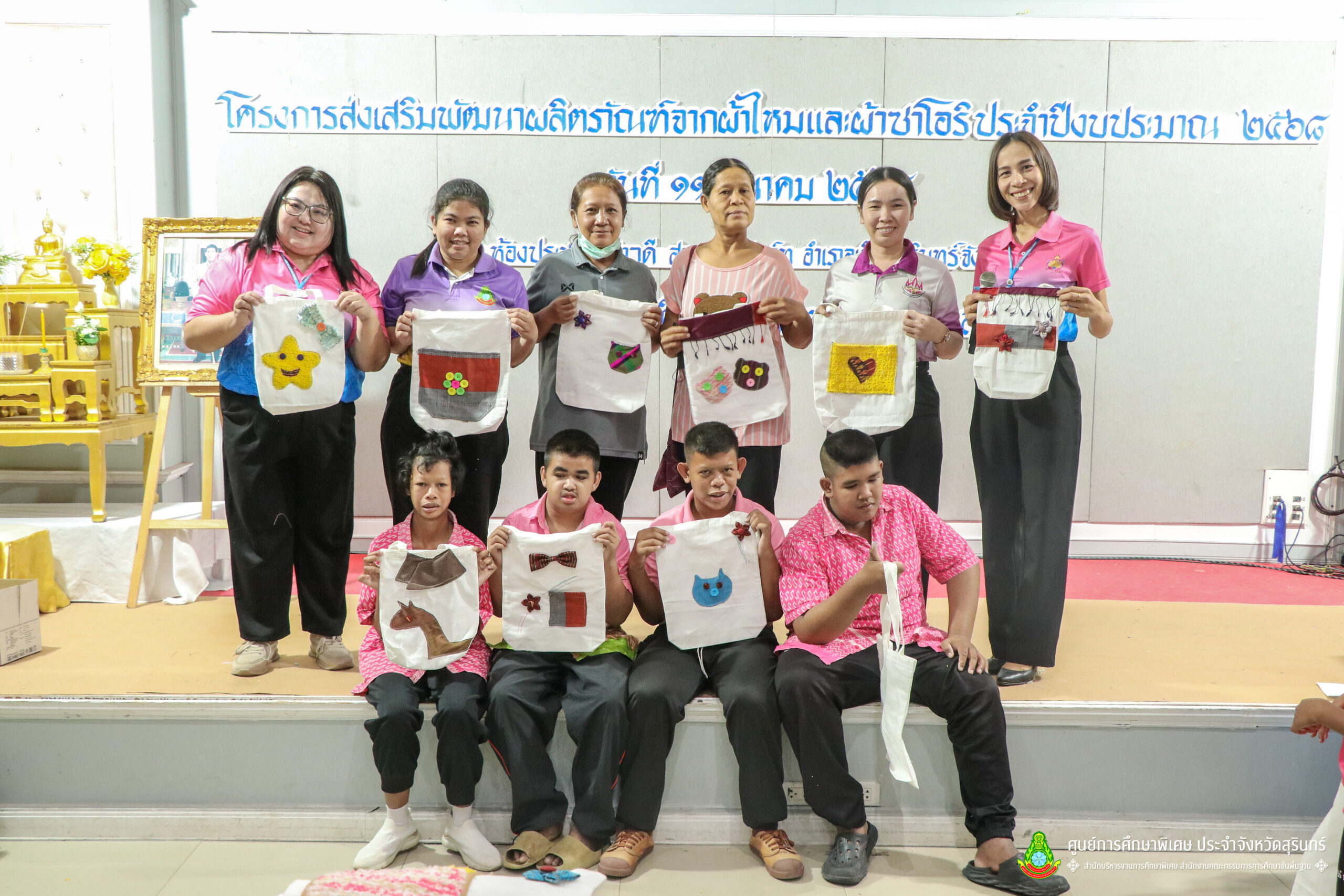 เมื่อวันที่ 11 เดือนมีนาคม พ.ศ. 2568 ศูนย์การศึกษาพิเศษ ประจำจังหวัดสุรินทร์ ร่วมกับ สำนักงานพัฒนาสังคมและความมั่นคงของมนุษย์จังหวัดสุรินทร์ (พมจ.) ได้จัดโครงการส่งเสริมพัฒนาผลิตภัณฑ์จากผ้าไหมและผ้าซาโอริ ประจำปีงบประมาณ 2568 เพื่อส่งเสริมให้เด็กที่มีความต้องการจำเป็นพิเศษ และผู้ปกครองได้มีอาชีพเสริม จากการพัฒนาผลิตภัณฑ์ โดยใช้วัสดุ ชิ้นส่วนจากผ้าไหม และผ้าซาโอริ ในการออกแบบลวดลายกระเป๋าอย่างสร้างสรรค์ สวยงาม สามารถสร้างรายได้ และพัฒนาชีวิตของ คนพิการ ให้สามารถดำรงชีวิตในสังคมได้อย่างมีคุณค่า ณ ห้องประชุมราชาวดี สวนป่ารีสอร์ท อำเภอเมืองสุรินทร์ จังหวัดสุรินทร์