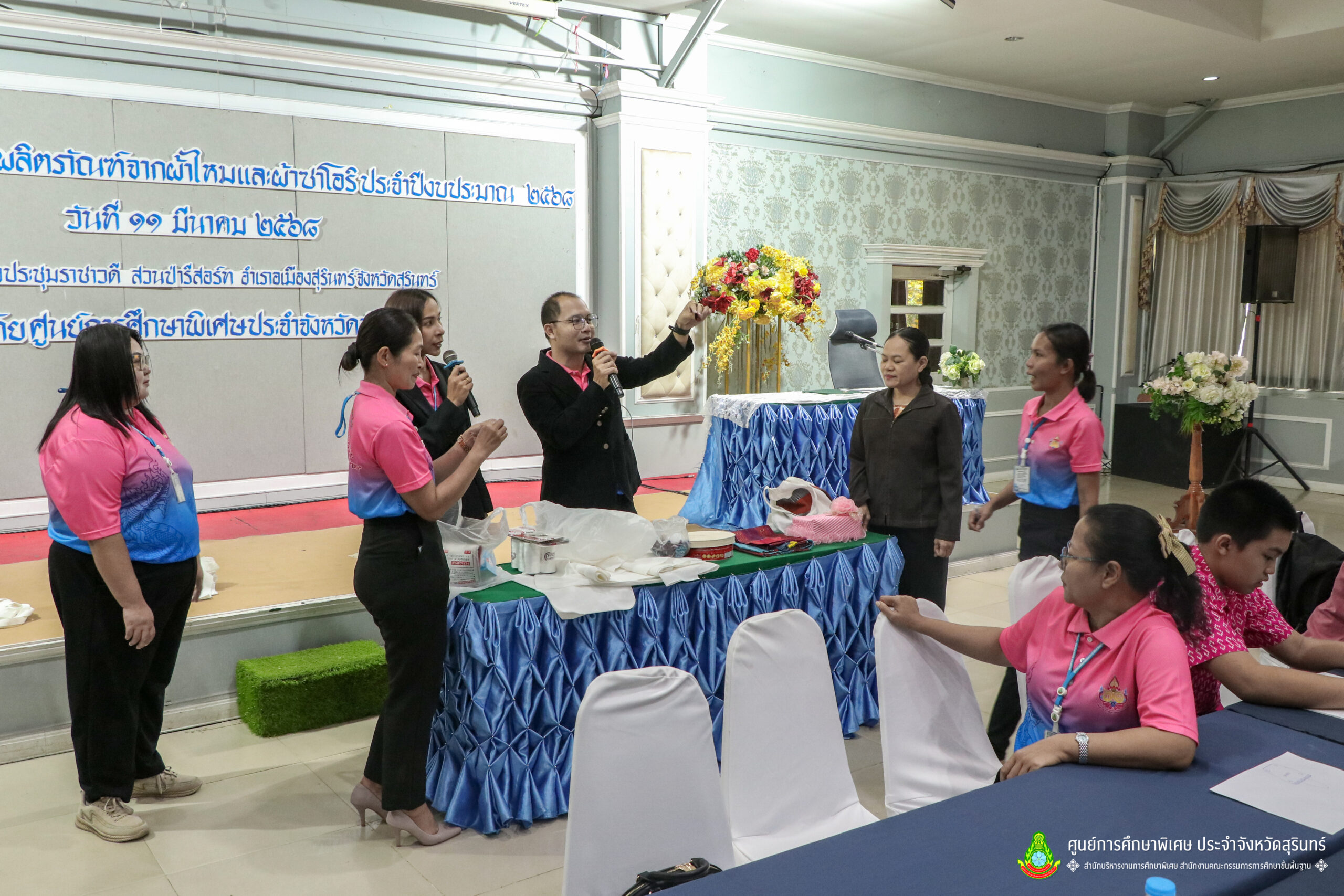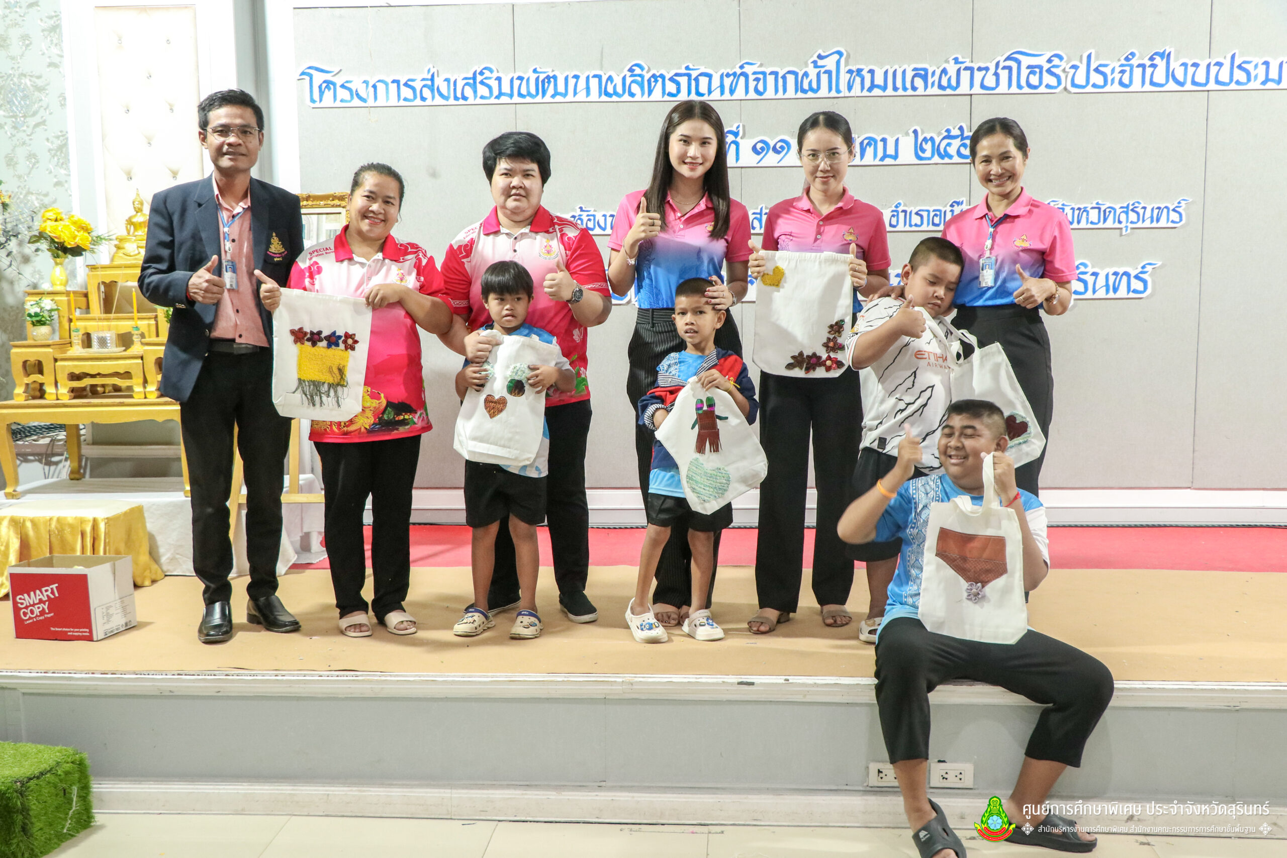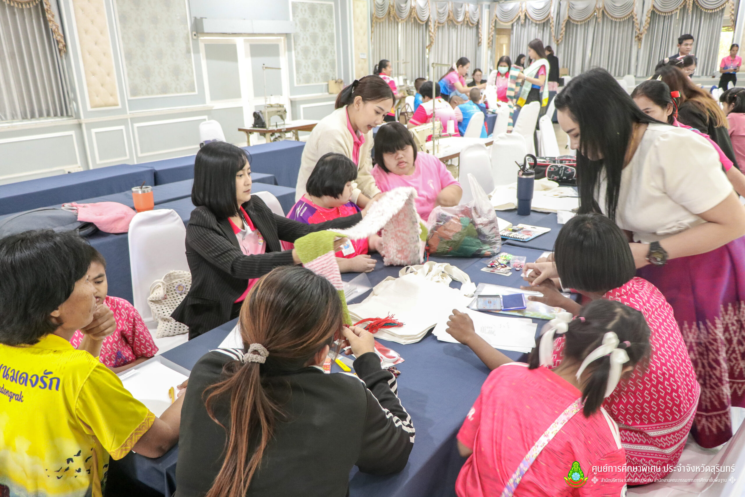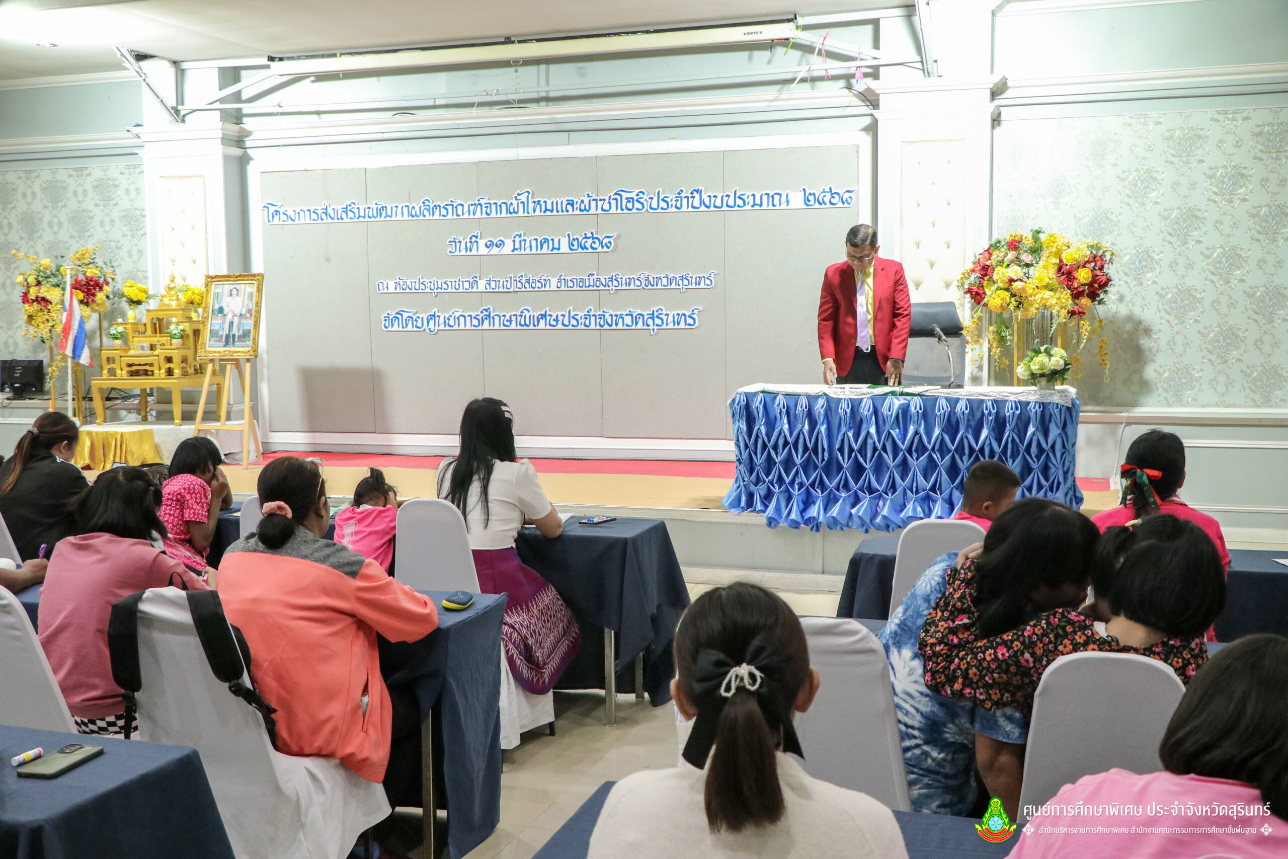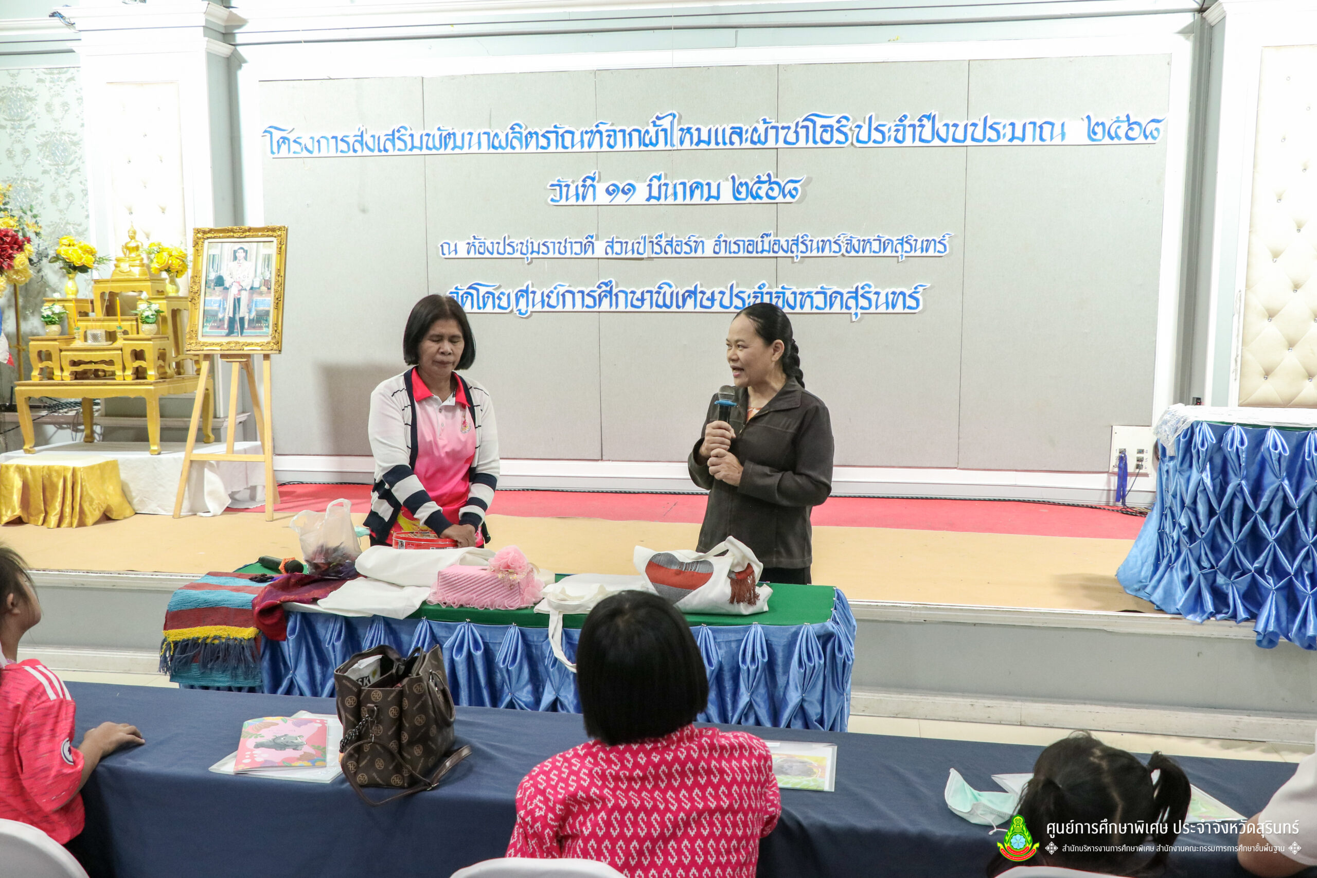 เมื่อวันที่ 11 เดือนมีนาคม พ.ศ. 2568 ศูนย์การศึกษาพิเศษ ประจำจังหวัดสุรินทร์ ร่วมกับ สำนักงานพัฒนาสังคมและความมั่นคงของมนุษย์จังหวัดสุรินทร์ (พมจ.) ได้จัดโครงการส่งเสริมพัฒนาผลิตภัณฑ์จากผ้าไหมและผ้าซาโอริ ประจำปีงบประมาณ 2568 เพื่อส่งเสริมให้เด็กที่มีความต้องการจำเป็นพิเศษ และผู้ปกครองได้มีอาชีพเสริม จากการพัฒนาผลิตภัณฑ์ โดยใช้วัสดุ ชิ้นส่วนจากผ้าไหม และผ้าซาโอริ ในการออกแบบลวดลายกระเป๋าอย่างสร้างสรรค์ สวยงาม สามารถสร้างรายได้ และพัฒนาชีวิตของ คนพิการ ให้สามารถดำรงชีวิตในสังคมได้อย่างมีคุณค่า ณ ห้องประชุมราชาวดี สวนป่ารีสอร์ท อำเภอเมืองสุรินทร์ จังหวัดสุรินทร์