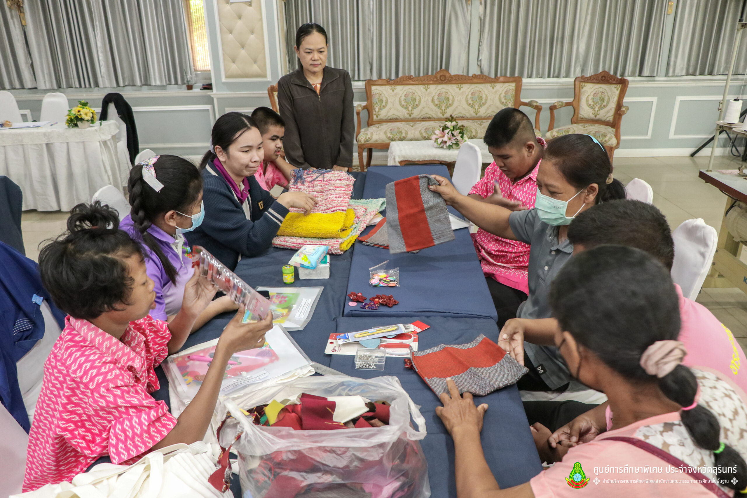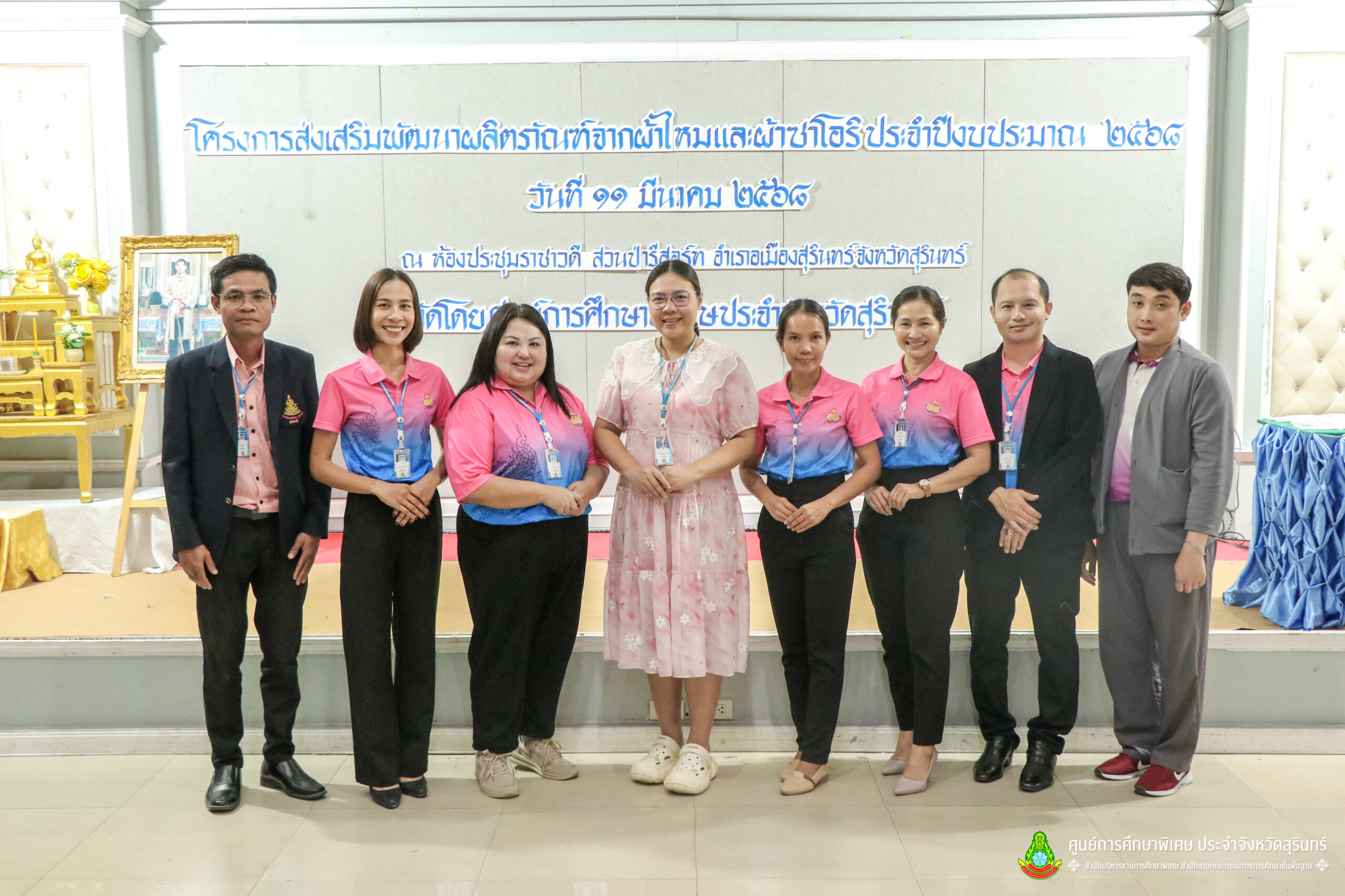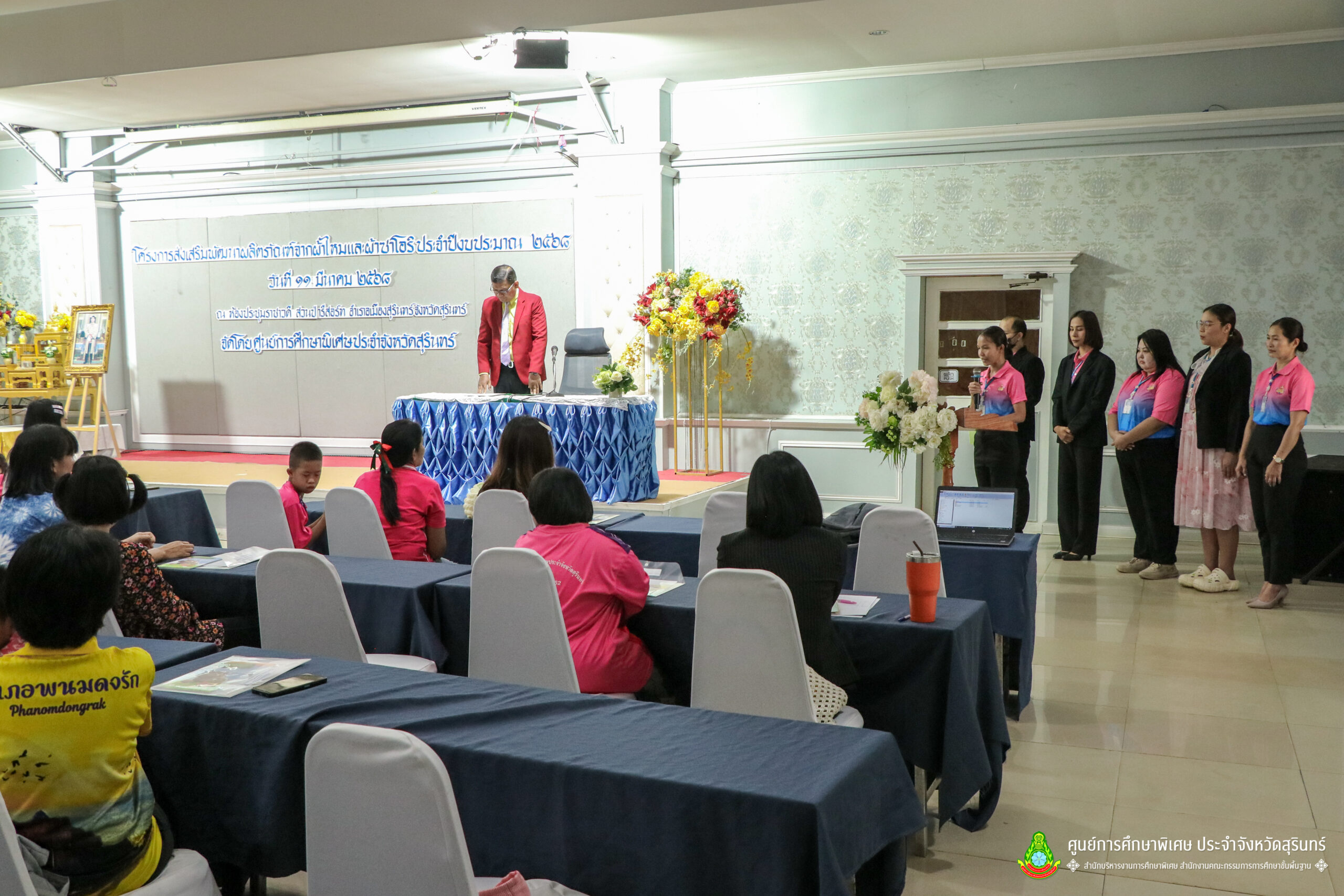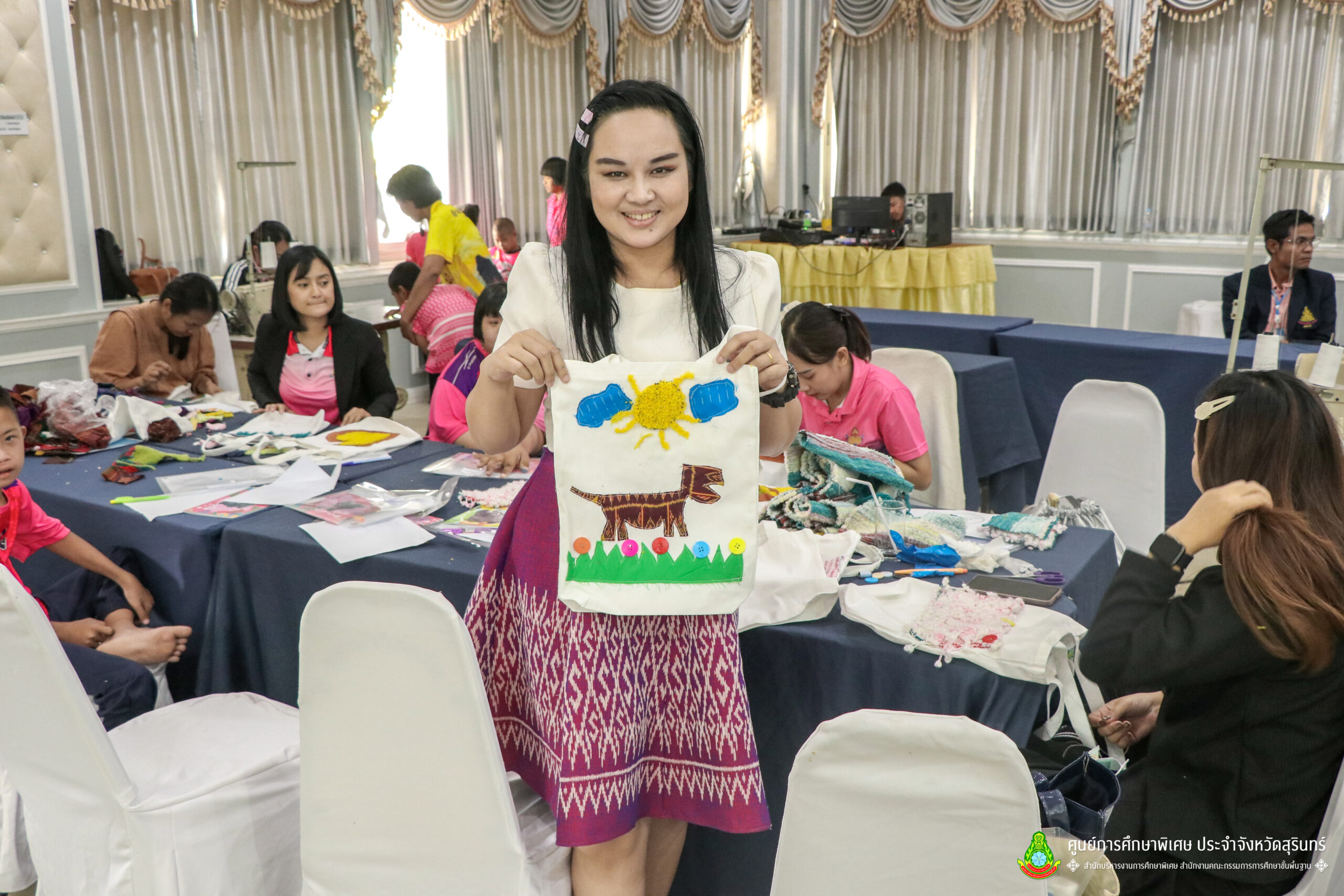 เมื่อวันที่ 11 เดือนมีนาคม พ.ศ. 2568 ศูนย์การศึกษาพิเศษ ประจำจังหวัดสุรินทร์ ร่วมกับ สำนักงานพัฒนาสังคมและความมั่นคงของมนุษย์จังหวัดสุรินทร์ (พมจ.) ได้จัดโครงการส่งเสริมพัฒนาผลิตภัณฑ์จากผ้าไหมและผ้าซาโอริ ประจำปีงบประมาณ 2568 เพื่อส่งเสริมให้เด็กที่มีความต้องการจำเป็นพิเศษ และผู้ปกครองได้มีอาชีพเสริม จากการพัฒนาผลิตภัณฑ์ โดยใช้วัสดุ ชิ้นส่วนจากผ้าไหม และผ้าซาโอริ ในการออกแบบลวดลายกระเป๋าอย่างสร้างสรรค์ สวยงาม สามารถสร้างรายได้ และพัฒนาชีวิตของ คนพิการ ให้สามารถดำรงชีวิตในสังคมได้อย่างมีคุณค่า ณ ห้องประชุมราชาวดี สวนป่ารีสอร์ท อำเภอเมืองสุรินทร์ จังหวัดสุรินทร์