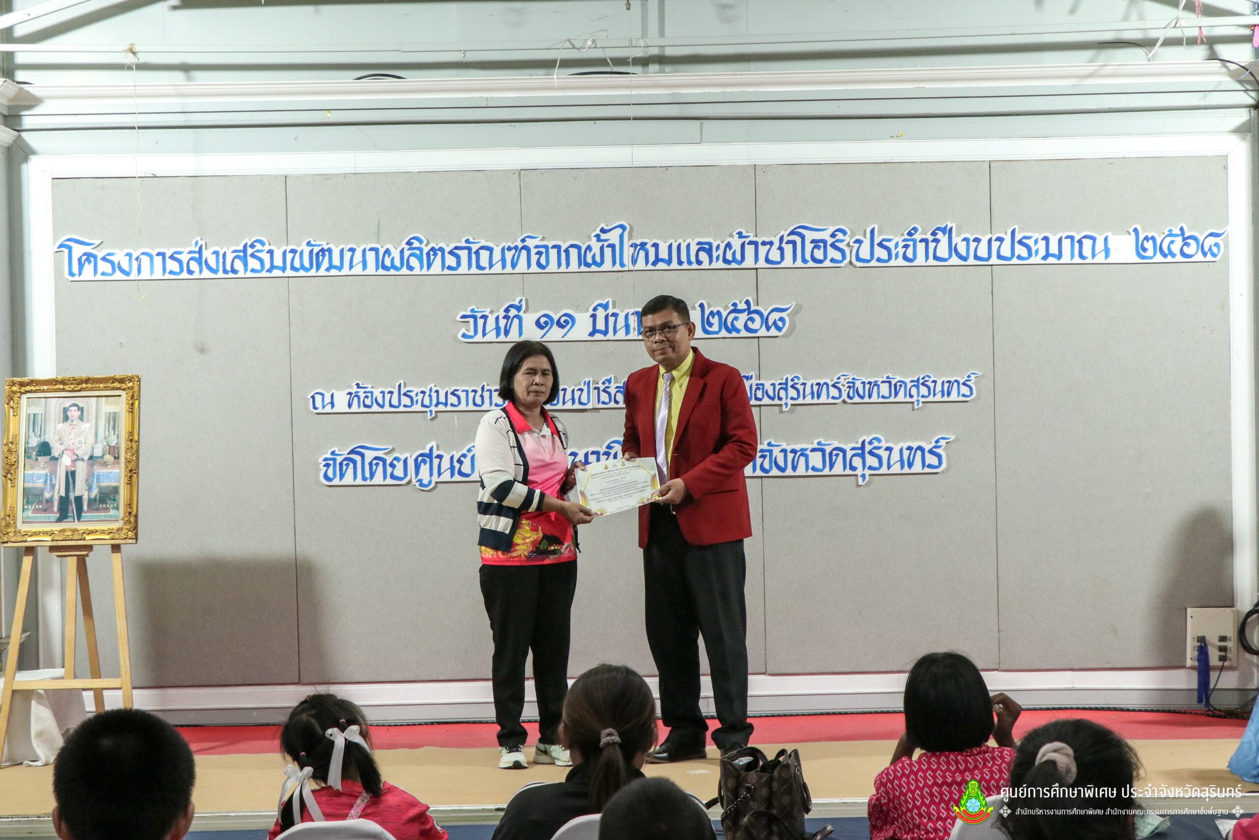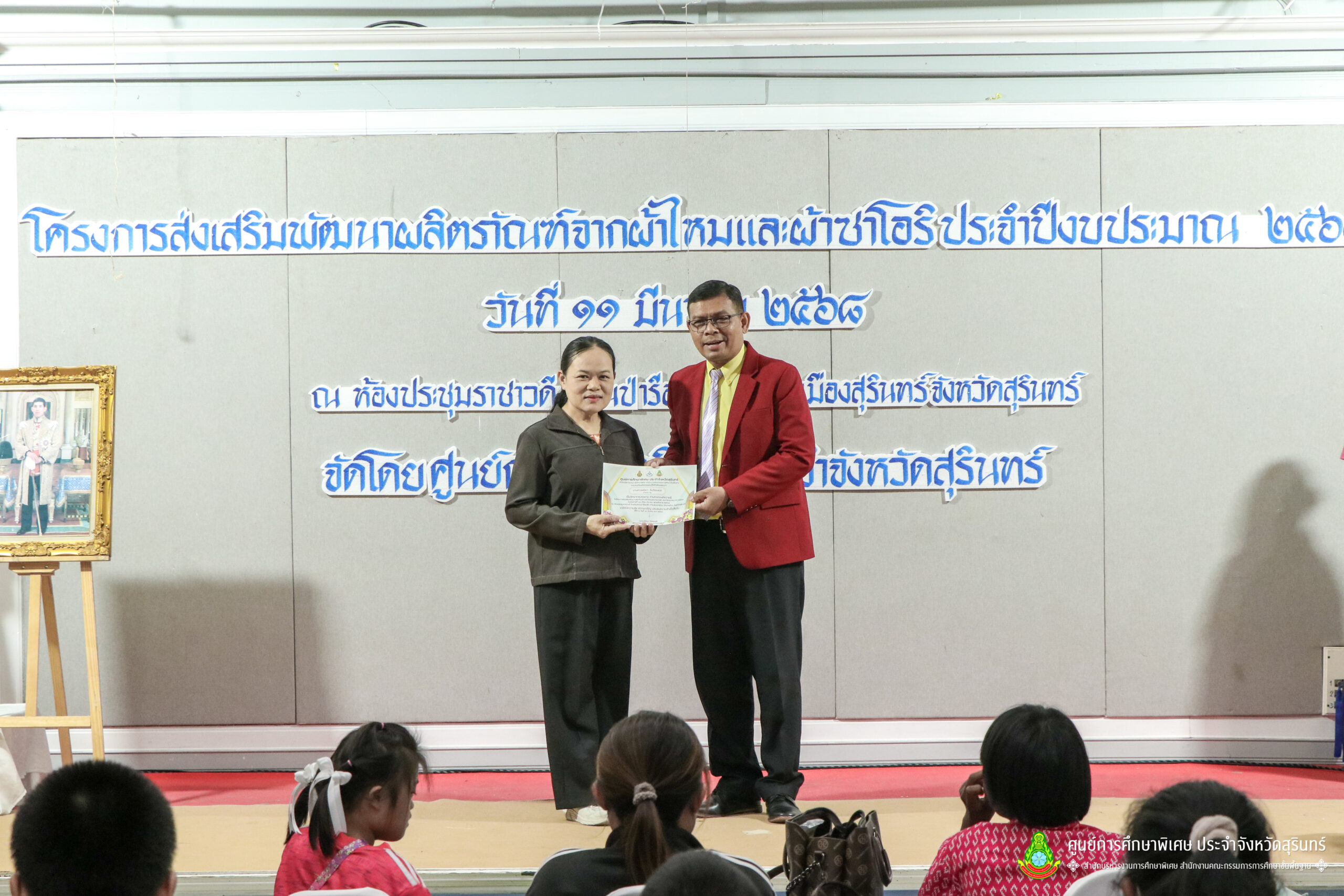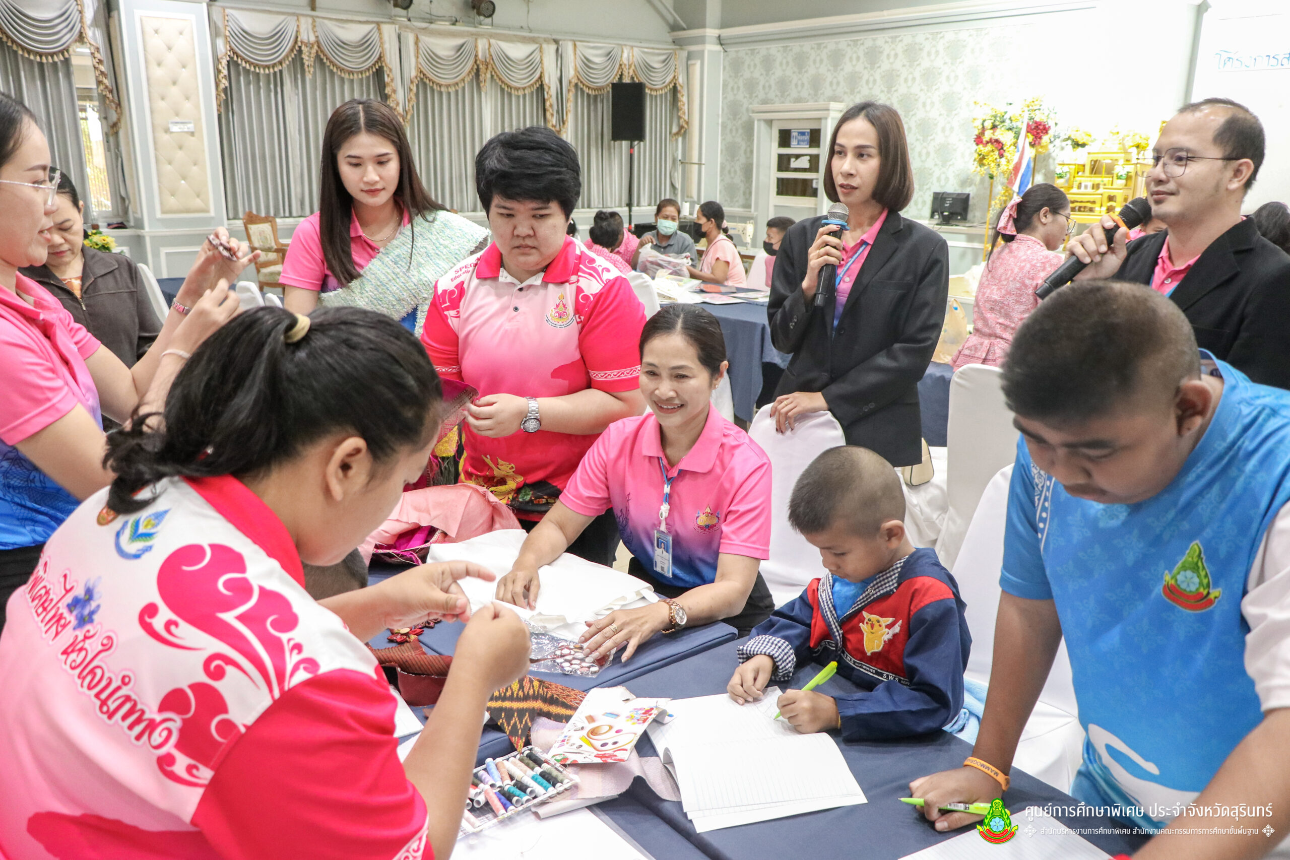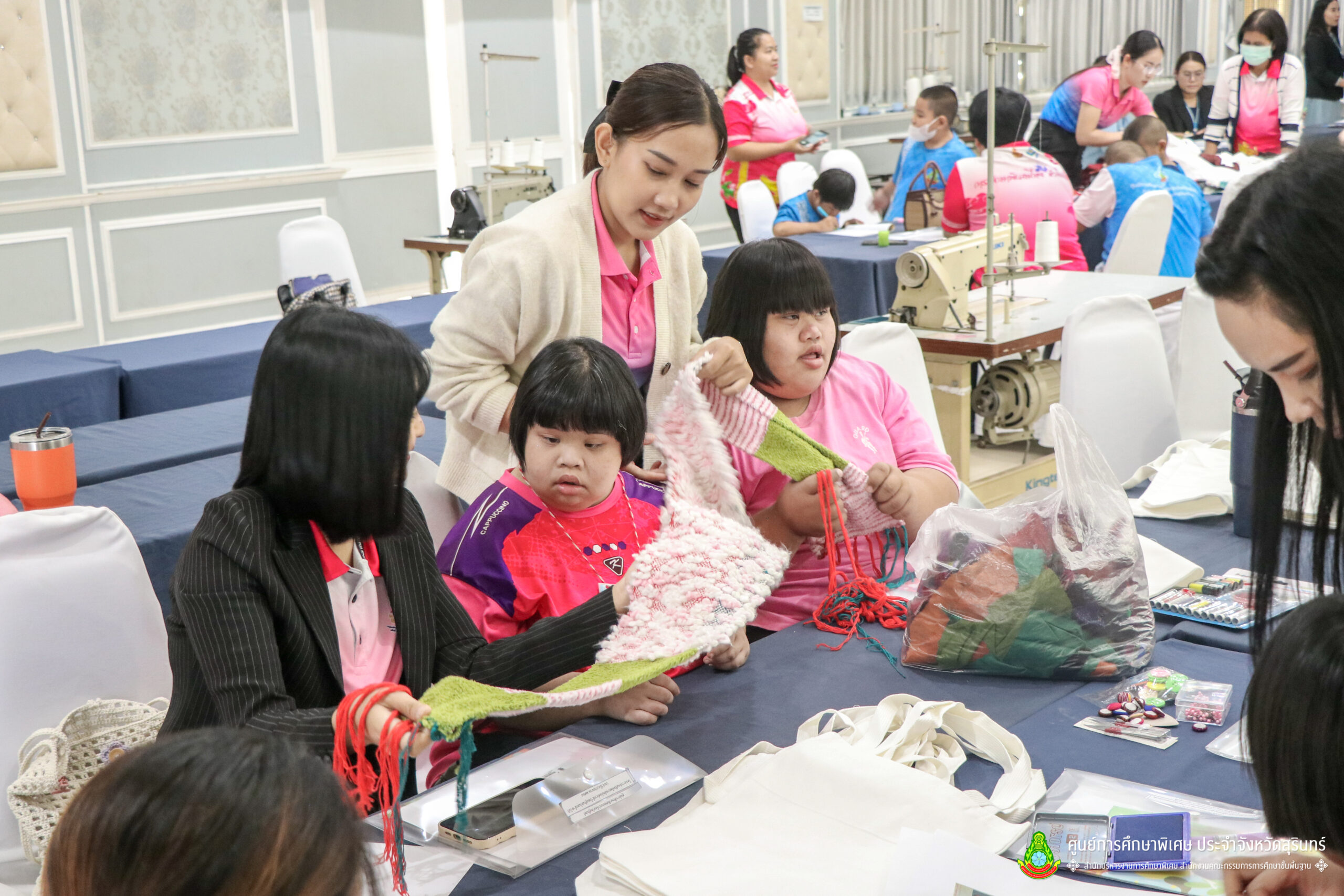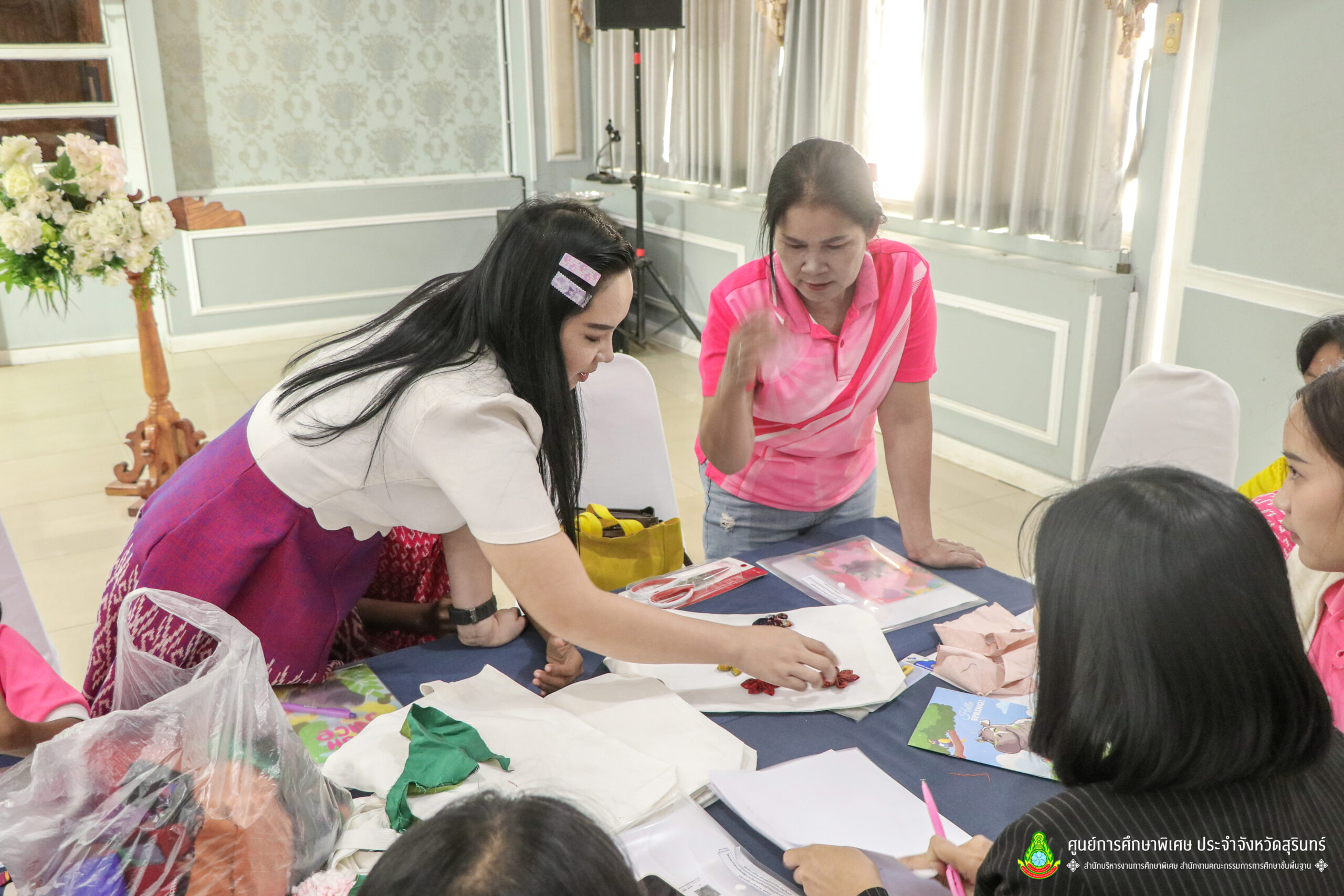 เมื่อวันที่ 11 เดือนมีนาคม พ.ศ. 2568 ศูนย์การศึกษาพิเศษ ประจำจังหวัดสุรินทร์ ร่วมกับ สำนักงานพัฒนาสังคมและความมั่นคงของมนุษย์จังหวัดสุรินทร์ (พมจ.) ได้จัดโครงการส่งเสริมพัฒนาผลิตภัณฑ์จากผ้าไหมและผ้าซาโอริ ประจำปีงบประมาณ 2568 เพื่อส่งเสริมให้เด็กที่มีความต้องการจำเป็นพิเศษ และผู้ปกครองได้มีอาชีพเสริม จากการพัฒนาผลิตภัณฑ์ โดยใช้วัสดุ ชิ้นส่วนจากผ้าไหม และผ้าซาโอริ ในการออกแบบลวดลายกระเป๋าอย่างสร้างสรรค์ สวยงาม สามารถสร้างรายได้ และพัฒนาชีวิตของ คนพิการ ให้สามารถดำรงชีวิตในสังคมได้อย่างมีคุณค่า ณ ห้องประชุมราชาวดี สวนป่ารีสอร์ท อำเภอเมืองสุรินทร์ จังหวัดสุรินทร์